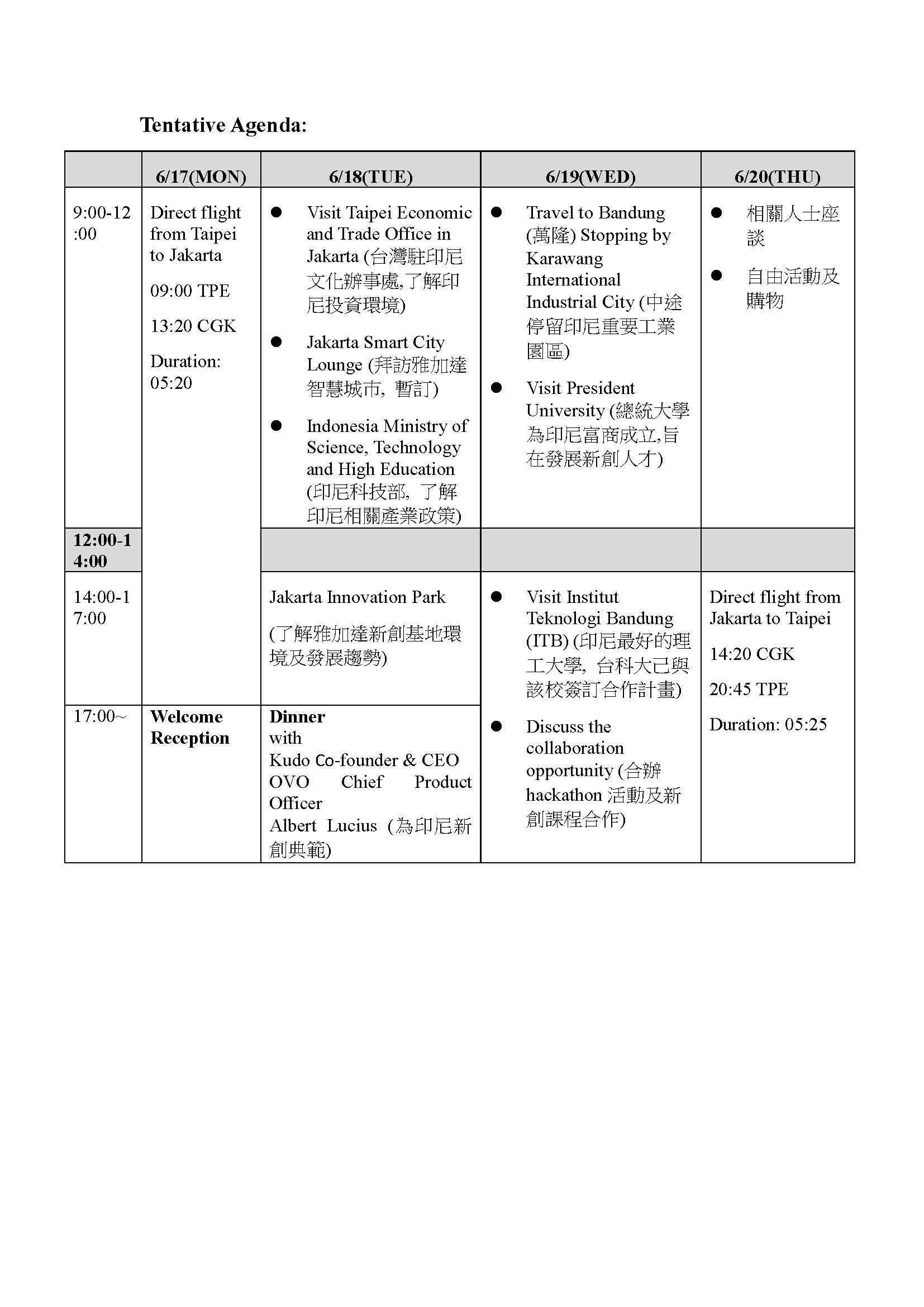 【總會訊息】06/17-06/20(一)-(四)印尼新創產業考察之旅