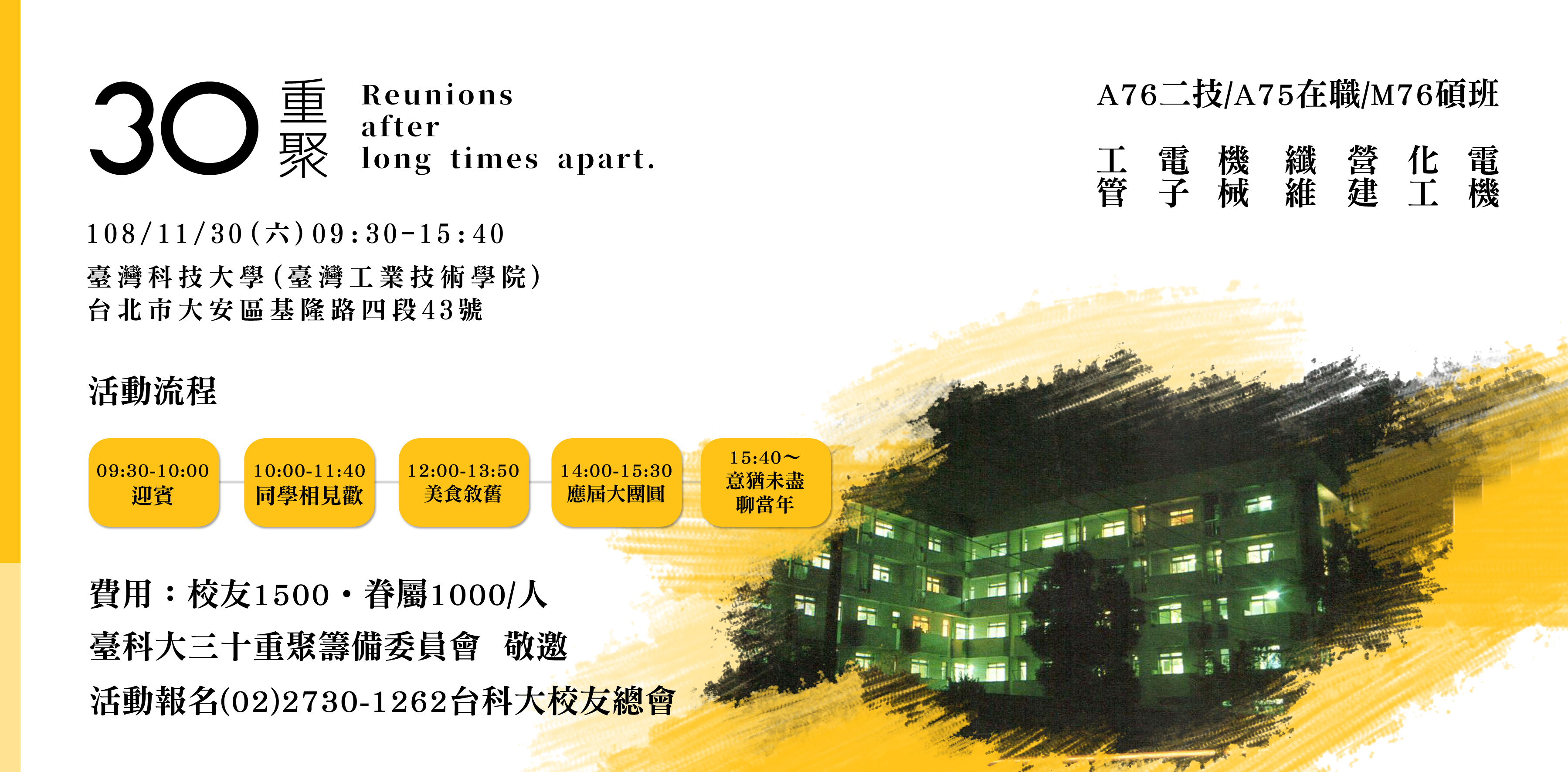 工管.電子.機械.纖維.營建.化工.電機 三十重聚籌備委員會 敬邀