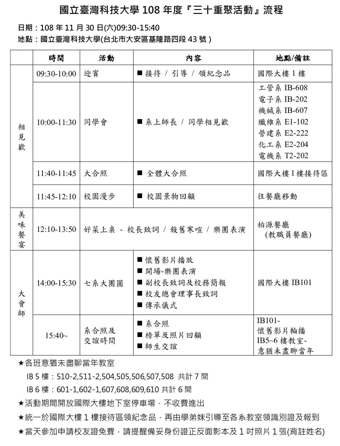 【總會訊息】11/30(六)108年度畢業『三十年重聚』活動