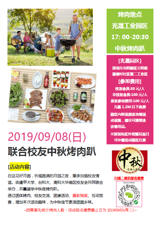 【華南校友會訊息】09/08(日)聯合校友中秋烤肉趴
