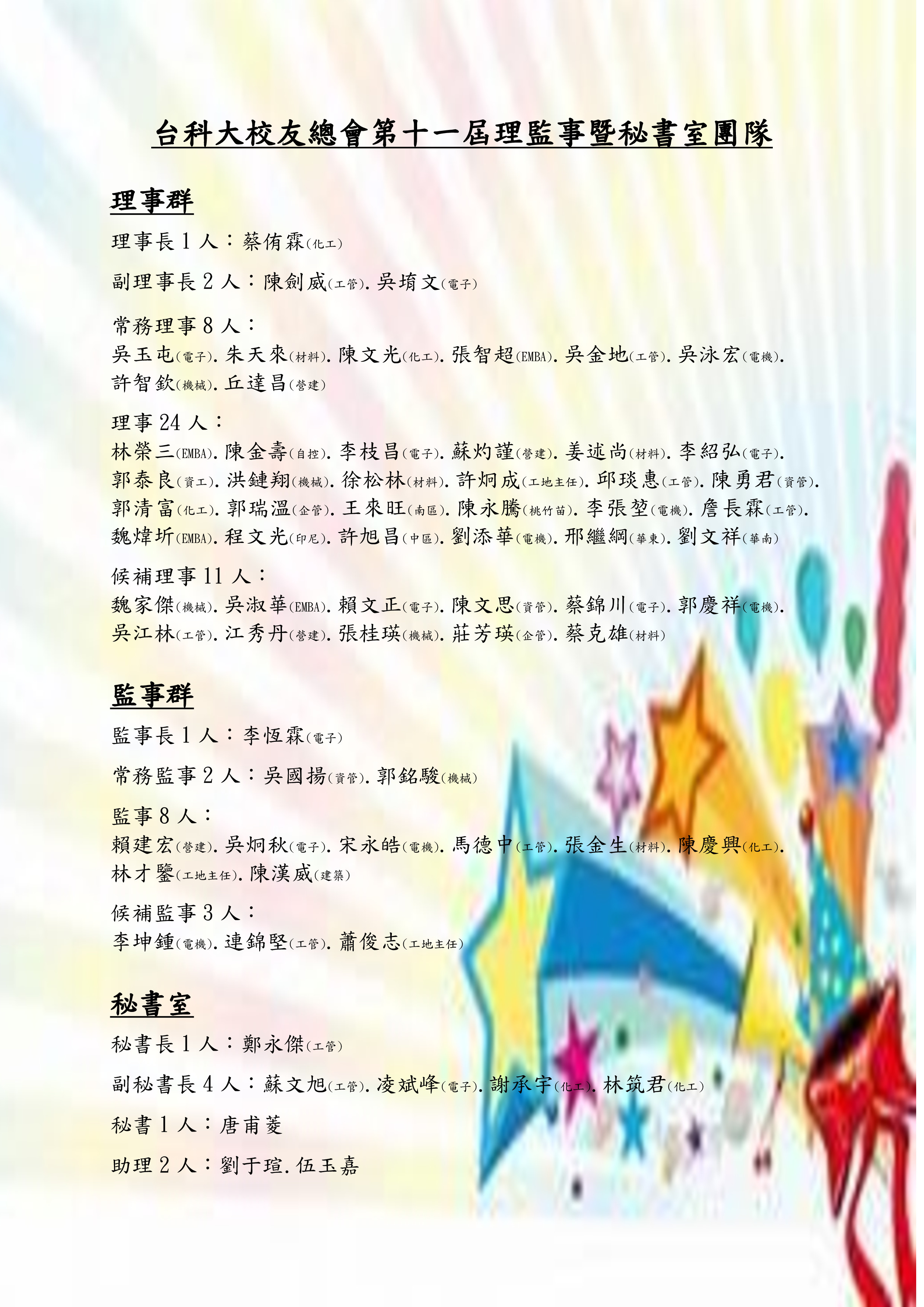 【總會訊息】第十一屆理監事.秘書室團隊名單