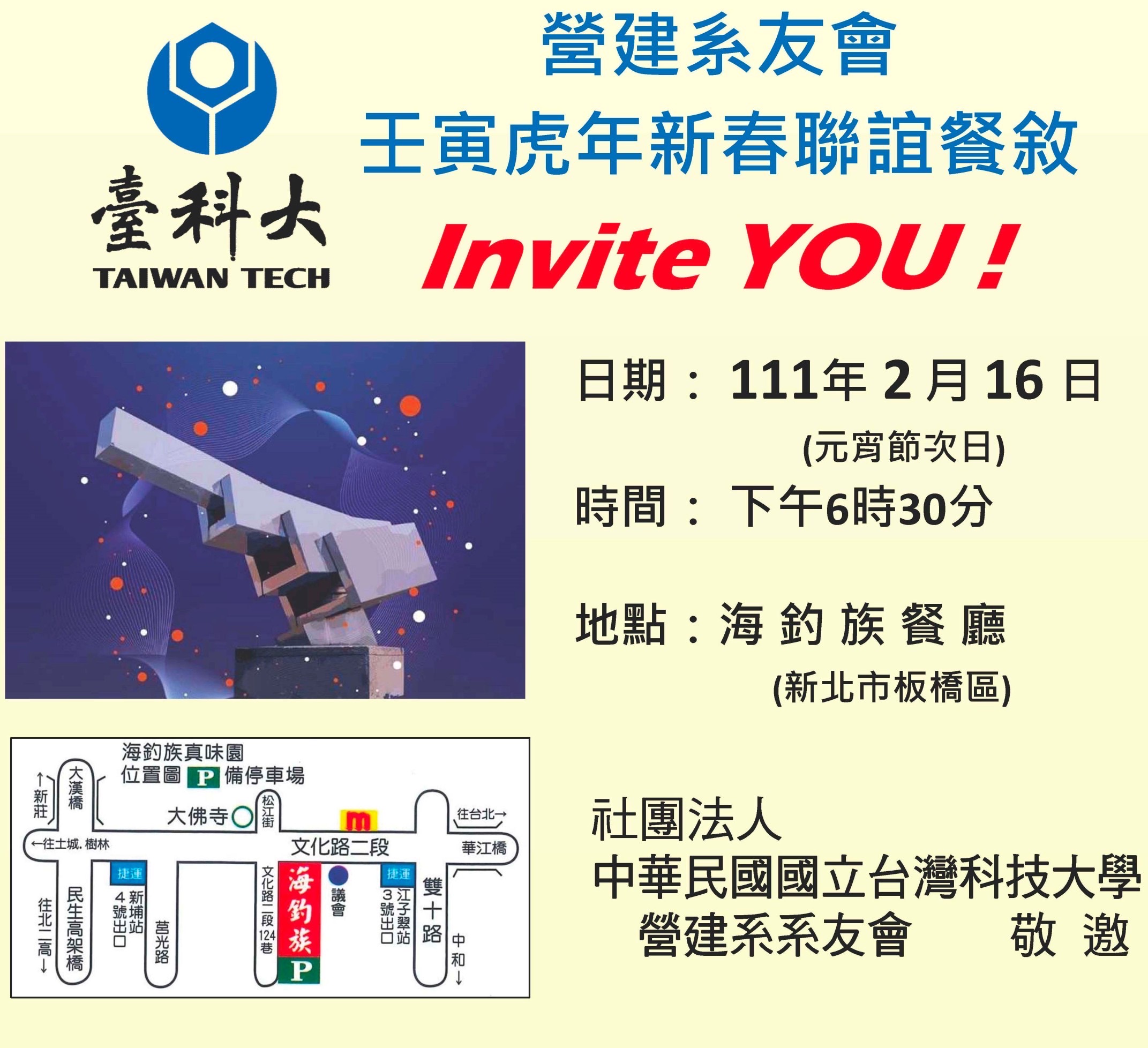 社團法人中華民國國立臺灣科技大學營建系系友會 敬邀