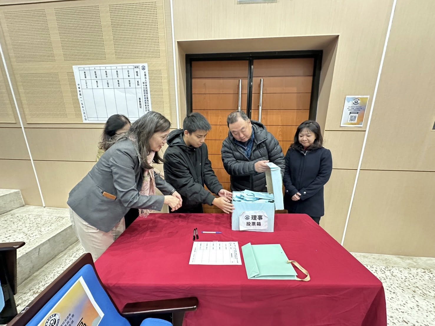 由監事林文盛學長、陳芋屏學姊監票下完成理事計票流程